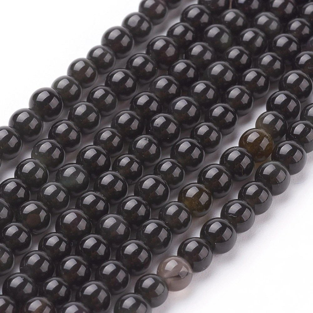 Obsidián černý, kvalita AA, 4-4,5 mm, šňůra 38 cm (cca 84 korálků)