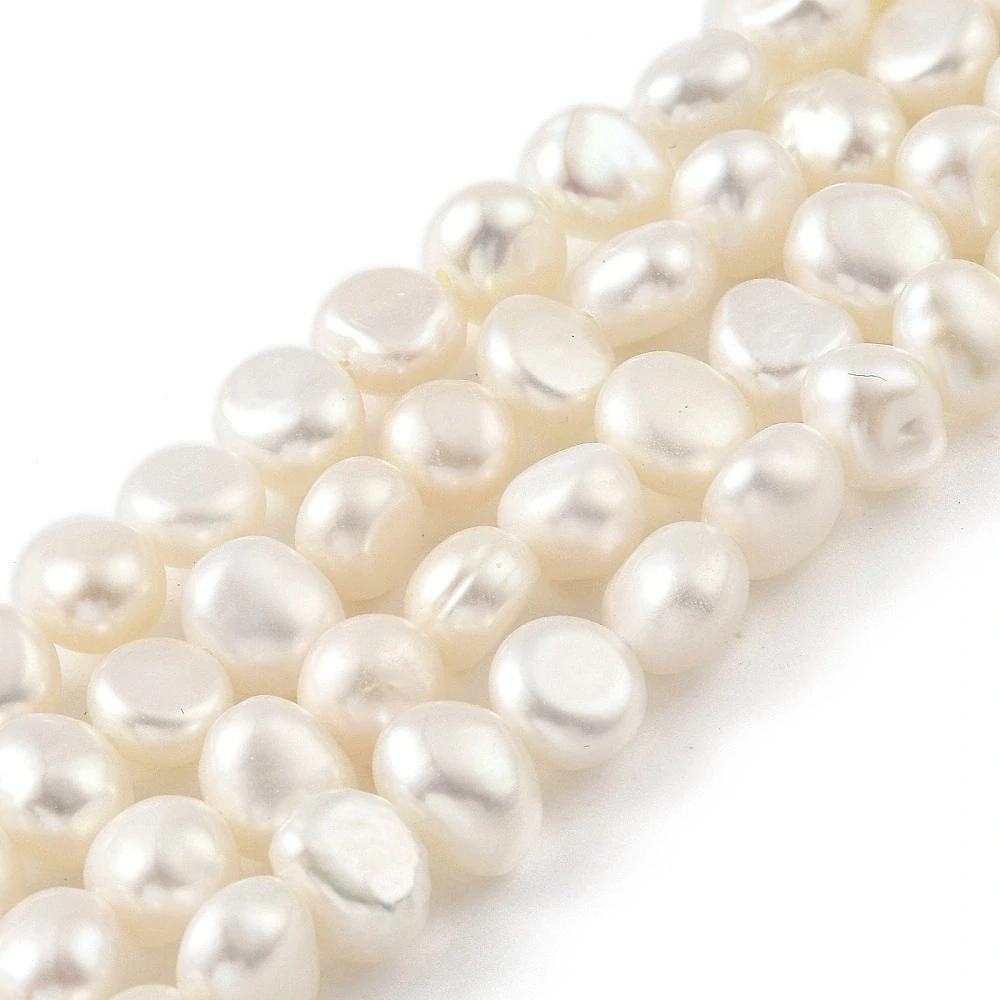 Říční perly penízky, 6-7 mm, půlšňůra 17 cm