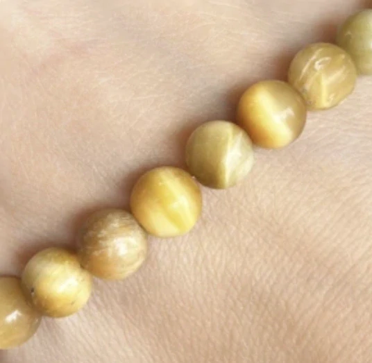 Tygří oko žluté, 8 mm, matné, půlšňůra 19 cm (cca 23 korálků)